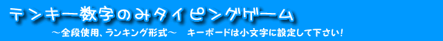 60秒間でタイピングできた数を計測します。1文字ミスすると、1秒マイナスされます。テンキーの数字のみで作成した無料タイピングゲームですので、練習すれば職場で必ず役に立つこと間違いなしですね。どんどん遊んでどんどん早くなって下さいね!